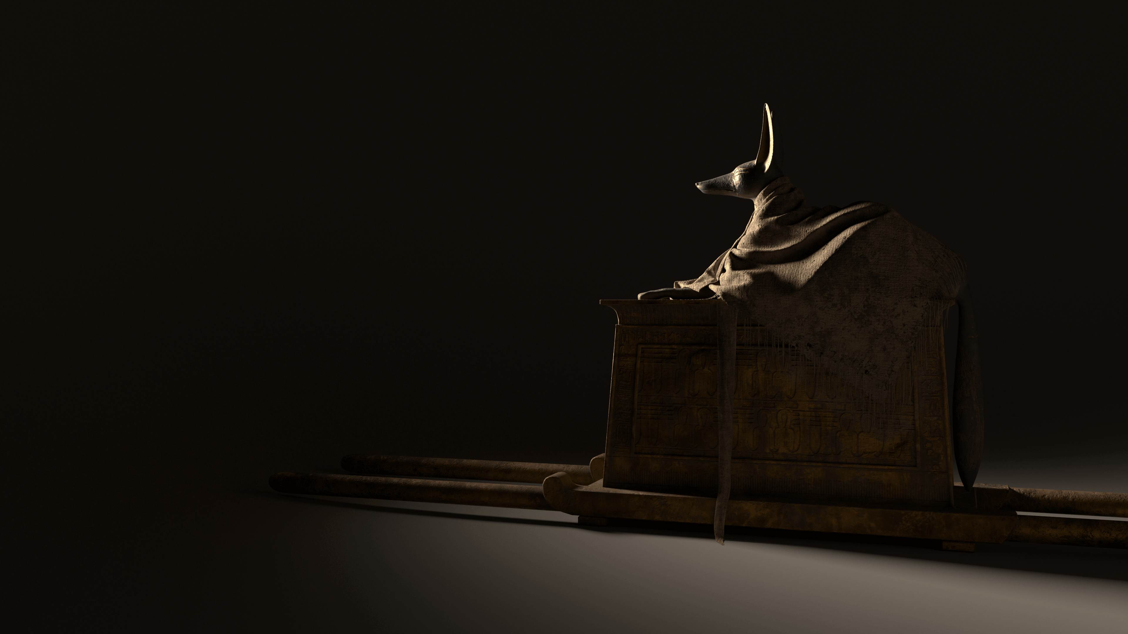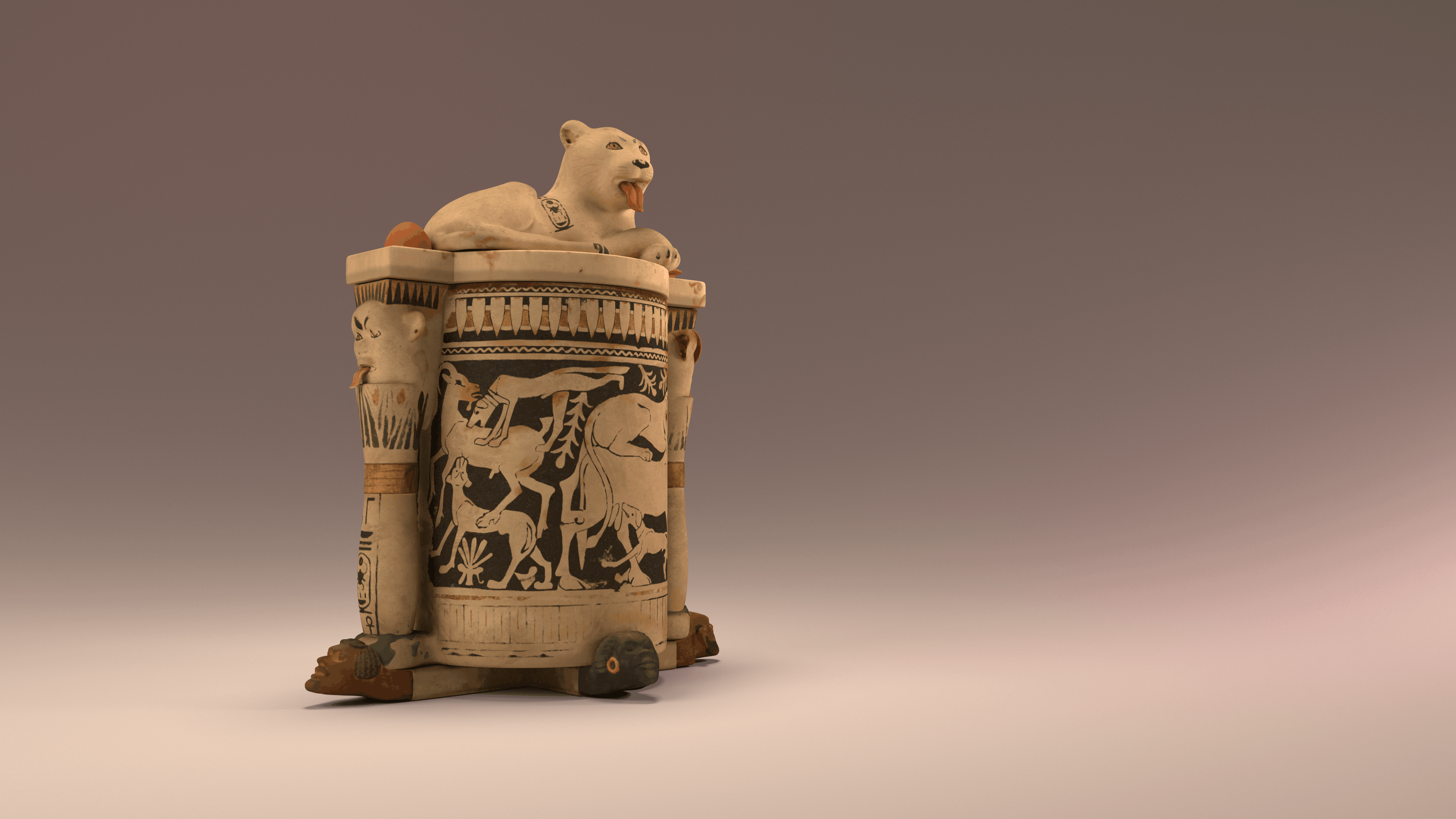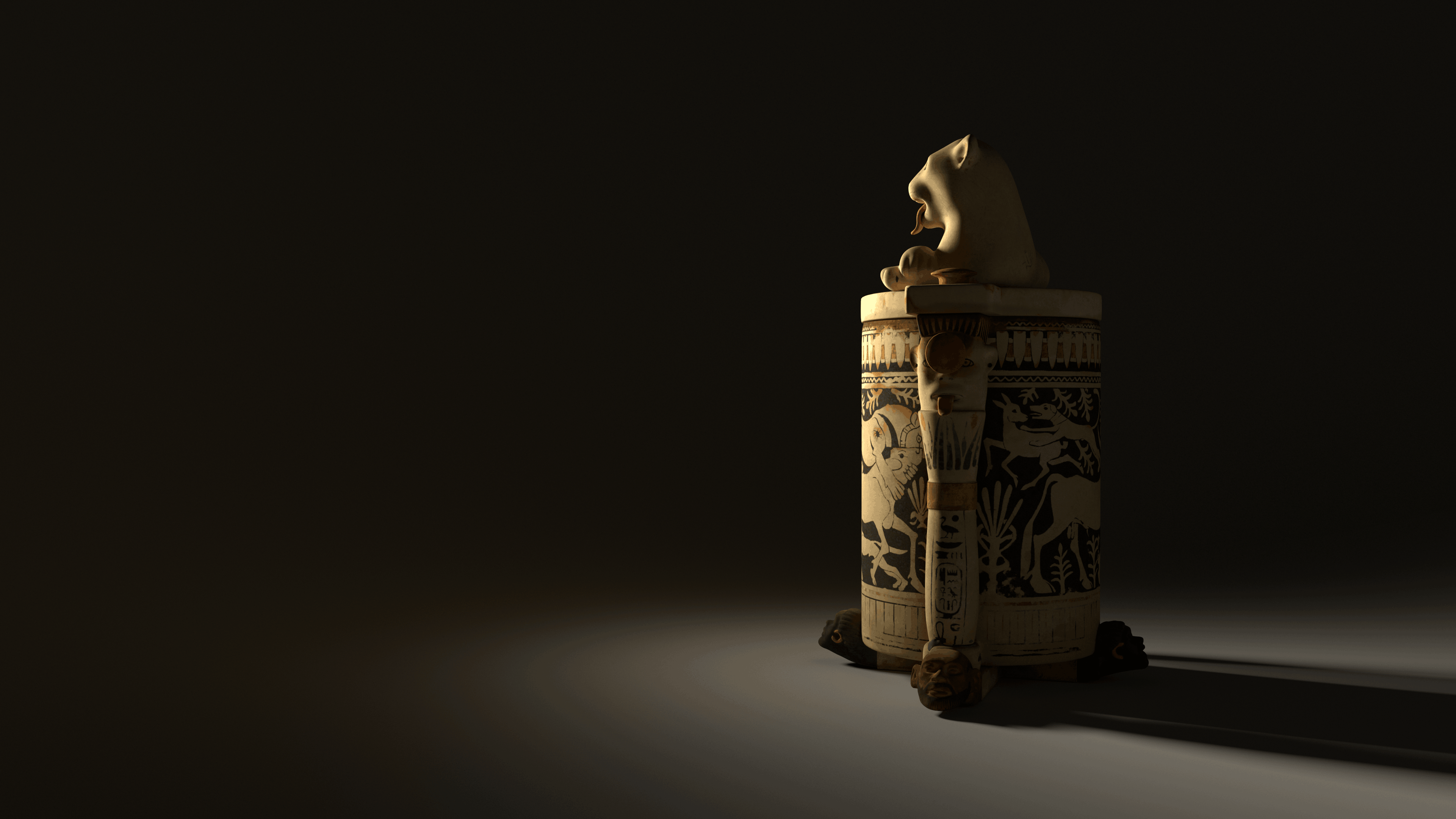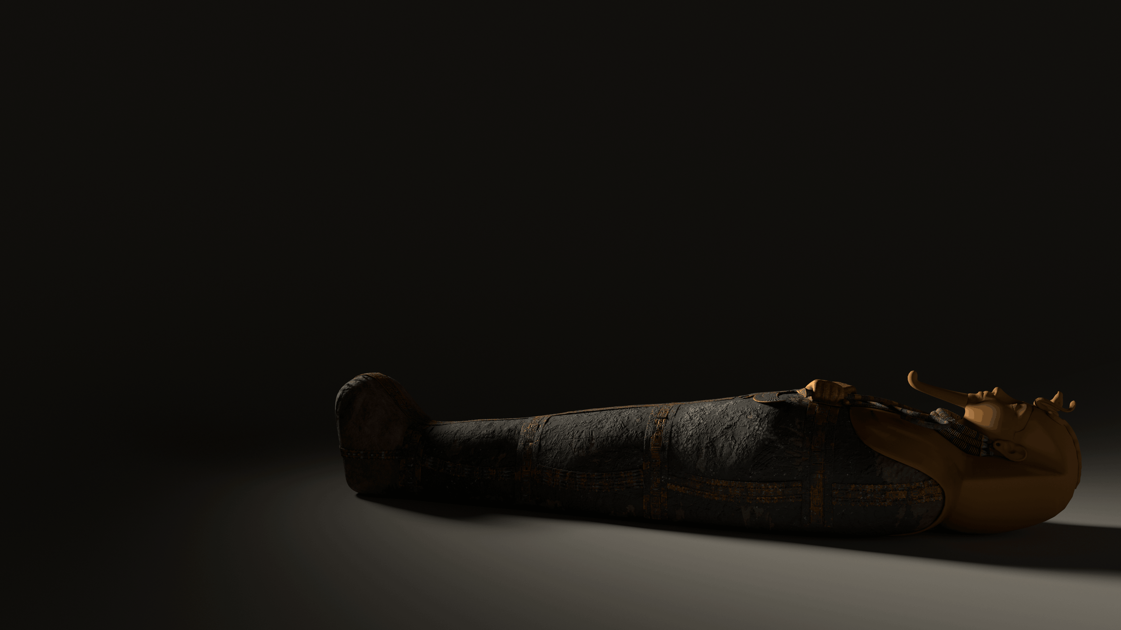Work from my internship with Mirage3D in Den Haag in 2023 for their 360° film on King Tut (not released yet). 1) Anubis Statue, 2) Mummy, 3) Calcite Cosmetic Jar, 4) Black chest. Modelled in Maya and Zbrush, cloth sim for Anubis in Marvellous Designer, textured in Substance Painter.